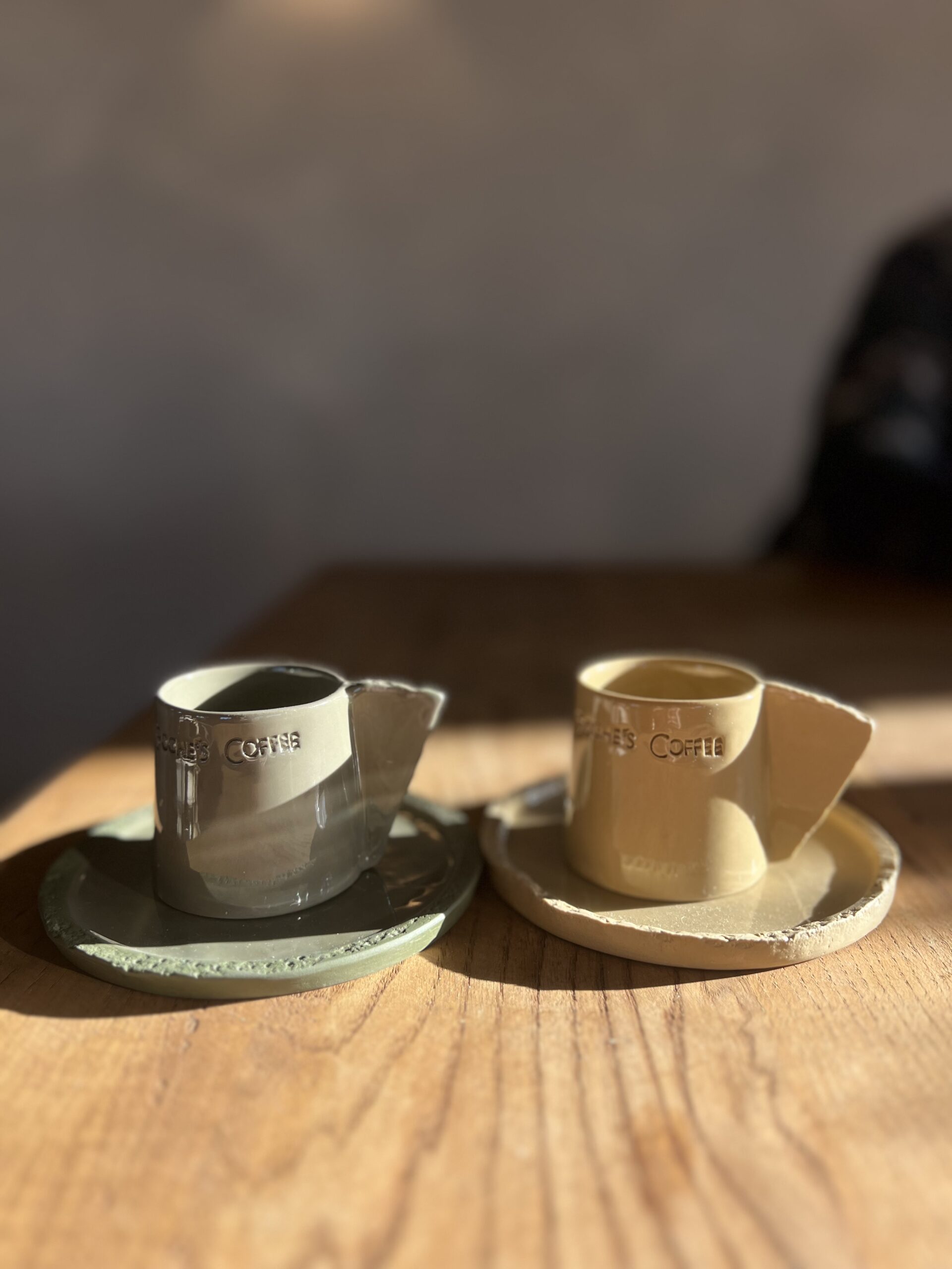Modern ve şık formuyla Goche’s Coffee estetiğini yansıtan, özel tasarım bir fincan takımı.